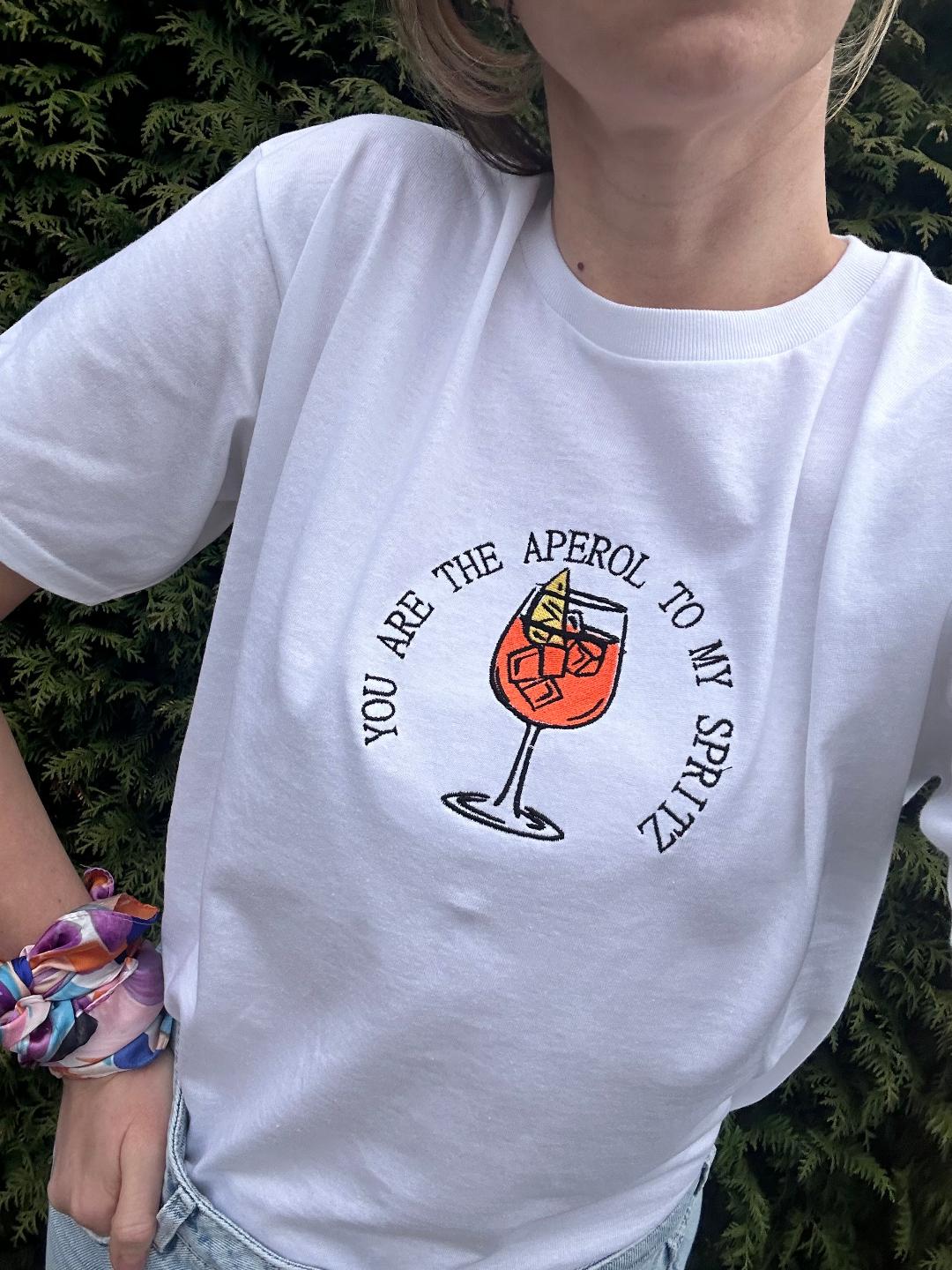 Embroidered "You are the Aperol to my Spritz" T-shirt, a must-have tees for anyone who loves the summer vibe Festive Party Birthday wearing